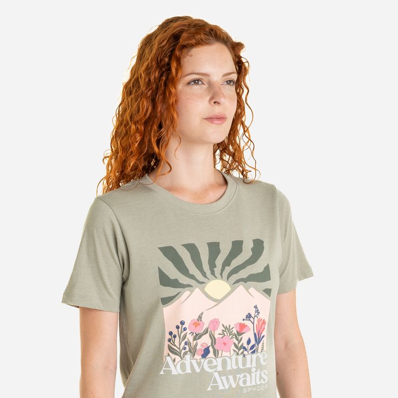Remera femenina de inspiración outdoor que combina un look relajado con espíritu aventurero. La Spyder Adventure Awaits Graphic T-Shirt está confeccionada en jersey CVC de algodón y polyester, ofreciendo una sensación suave, liviana y cómoda para el uso diario.